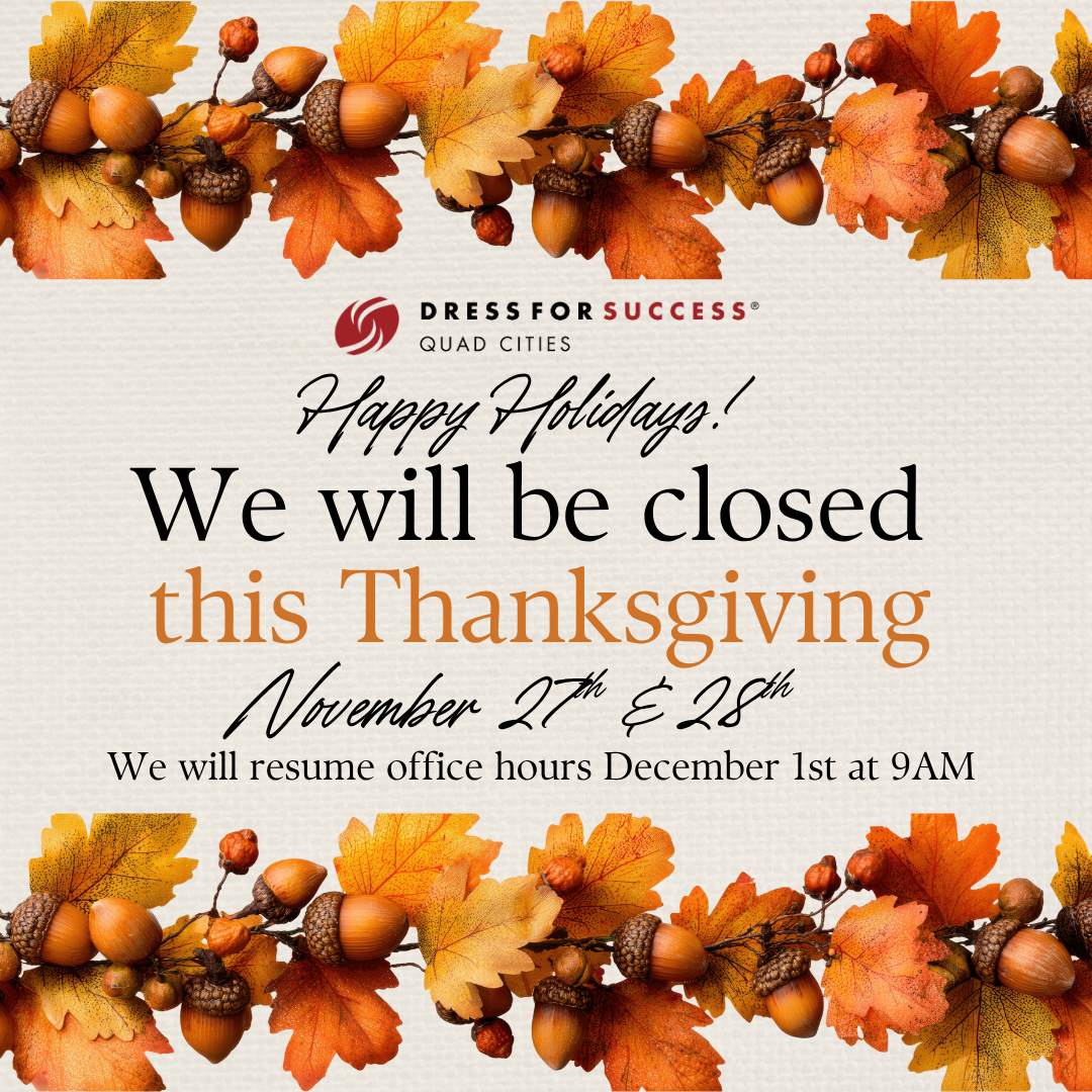 Dress for Success Quad Cities is a nonprofit serving women in the greater Quad Cities area by providing job search and career development services as well as professional attire for interviews. Our objective is to create lasting change by equipping women in the Quad Cities area with the resources and ongoing support needed to obtain and retain jobs that bring economic stability to their lives – ultimately building skilled leaders in our community.