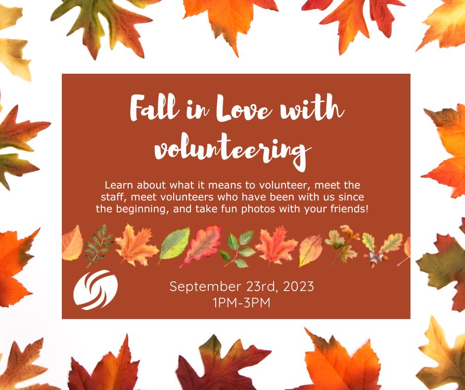We hope you’ll join us from 1pm-3pm to learn about what it means to volunteer, meet the staff, meet volunteers who have been with us since the beginning, and take fun photos with your friends! Don’t forget to come ready to enjoy