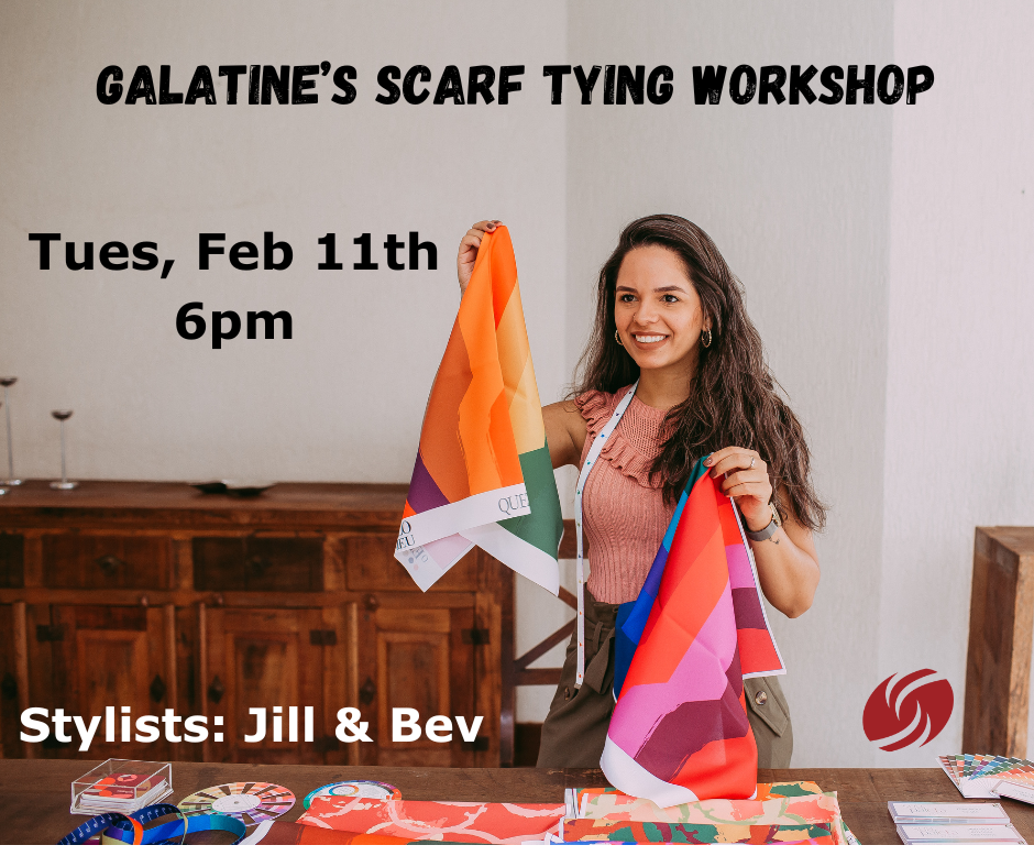 Galatine’s scarf tying workshop is a hands-on session where participants learn various creative and stylish techniques for tying scarves. The workshop typically covers a range of methods for different types of scarves, and demonstrates how to use them for different occasions and outfits. Participants are taught how to create looks for everyday wear, special events, or even practical uses like keeping warm. The session often includes tips on accessorizing, using scarves to elevate a simple outfit, and exploring the cultural significance or historical context of scarf styles. Whether for fashion, function, or fun, attendees leave the workshop with a variety of new skills and ideas for incorporating scarves into their wardrobe. Participants will walk away with complementary scarves.